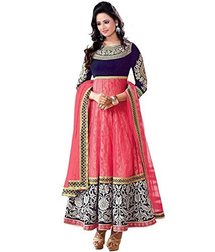 Jay Varudi Creation Women's Net Anarkali Dress Material (Mp987_Pink_Free Size)